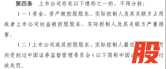 根据证监会发布的《上市公司分拆规则(试行)》有关规定,上市公司或其控股股东、实际控制人最近三十六个月内受到过中国证监会的行政处罚,不得分拆子公司上市。