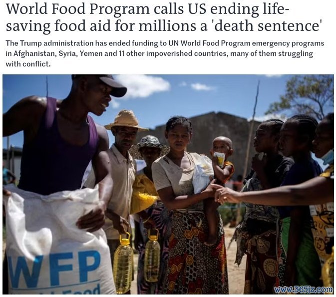 世界粮食计划署警告说,美国中断紧急粮食援助相当于是对千百万面临极端饥饿的民众“判处死刑”。